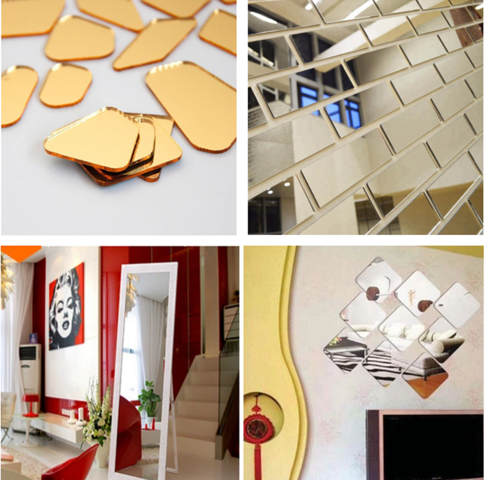 Acrylic mirror panel is widely used in sculpture, advertising, lampshade, decoration, medical equipment, stationery rack, gift, kitchen and bathroom furniture, architectural decoration, optics and artwork.